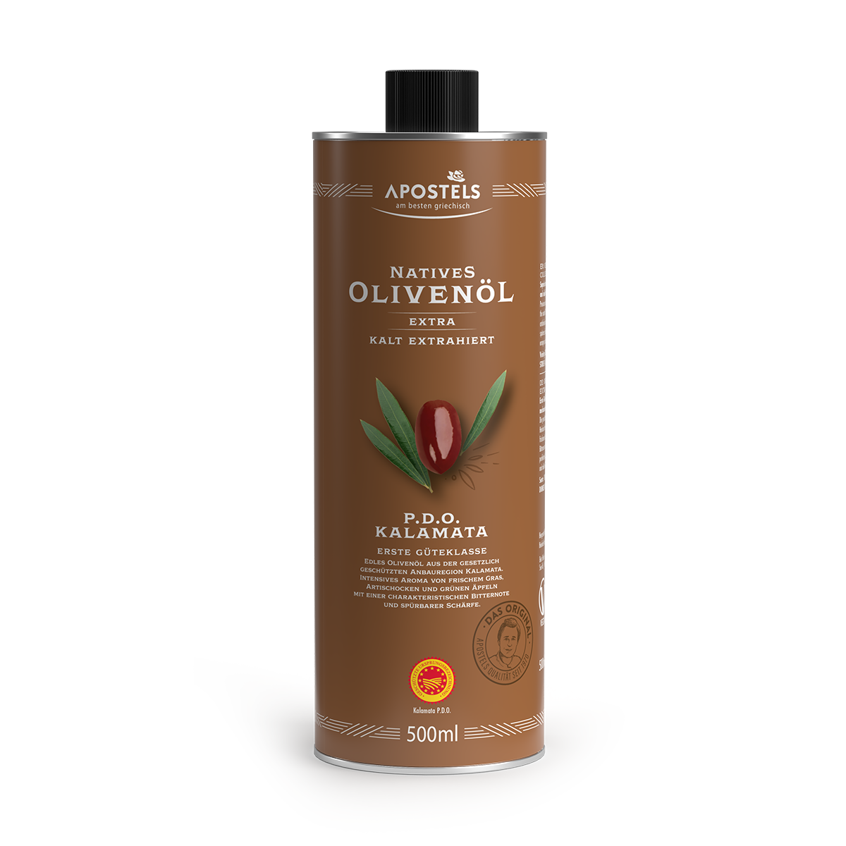 Ein natives Olivenöl extra mit geschützter Ursprungsbezeichnung (g.U.) aus Kalamata, zu 100 % aus der Sorte Koroneiki. Es handelt sich um ein natives Olivenöl extra mit geschützter Ursprungsbezeichnung, das ausschließlich aus Oliven gewonnen wird, die im Olivenanbaugebiet von Kalamata geerntet werden.