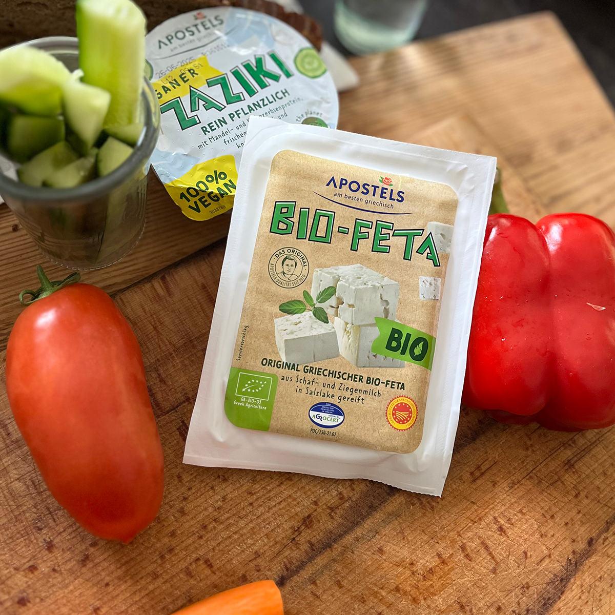 Der original griechische Feta aus Schaf- und Ziegenmilch wurde in Salzlake gereift. Er überzeugt durch sein kräftiges und würziges Aroma und einem hohen Nährwert.